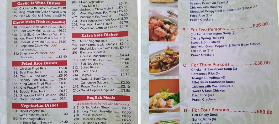You can expect to spend between £10 and £20 per meal, which is great value for high-quality Chinese takeaway.